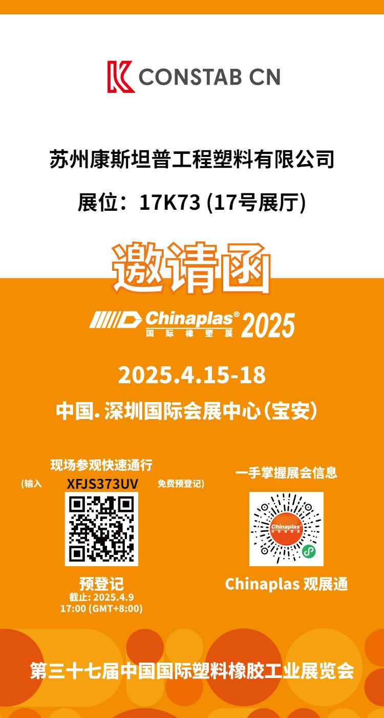 康斯坦普中國已整裝待發(fā),期待與您在國際橡塑展有一場意義非凡的會面,2025年4月15至18日我們相約于鵬城深圳。